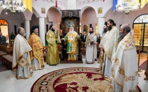 Κατά την διάρκεια της Θείας Λειτουργίας τέθηκε σε προσκύνηση και ευλογία των πιστών τεμάχιο του Ιερού Λειψάνου του εορτάζοντος Αγίου Γεωργίου Καρσλίδη.
