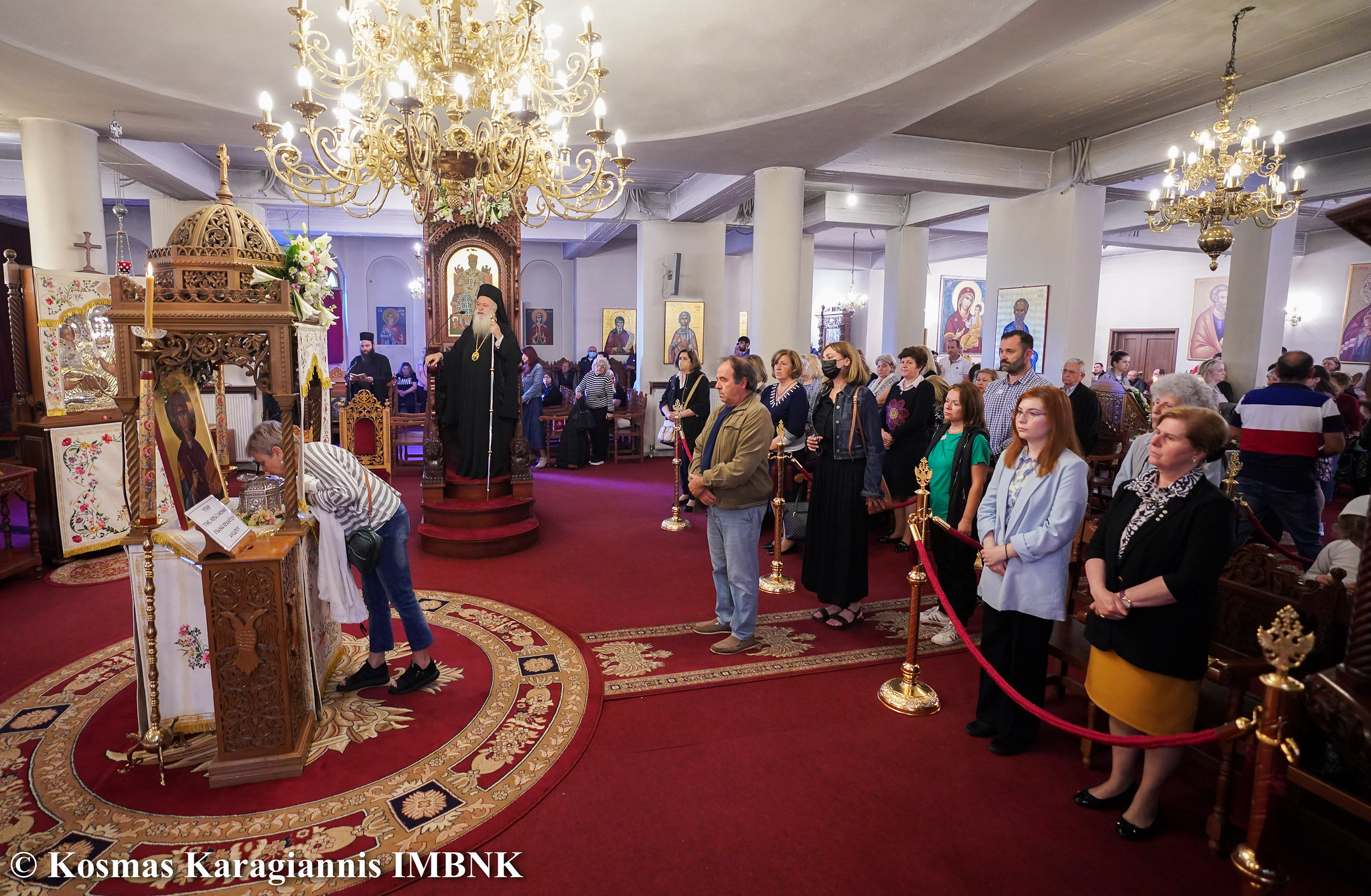 Με συγκίνηση ο Ποιμενάρχης κ. Παντελεήμων, η αδελφότητα της Ιεράς Μονής και το πλήθος των ευλαβών προσκυνητών έψαλλαν την παράκληση των δύο Αγίων Ιατρών, στο τέλος της οποίας αναχώρησε η Τιμία Κάρα του Αγίου Παντελεήμονος.