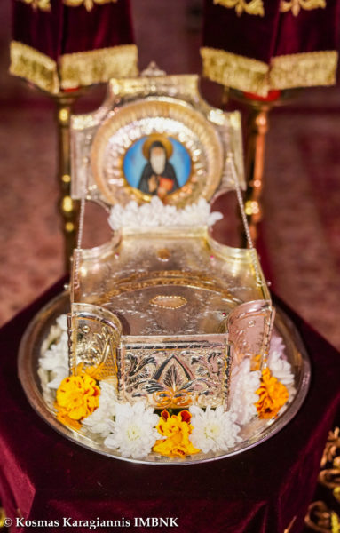 Στην διάρκεια της Ιεράς Αγρυπνίας τέθηκε σε προσκύνηση τεμάχιο Ιερού Λειψάνου του Οσίου Αρσενίου του Καππαδόκου, το οποίο φυλάσσεται στον Ιερό Ναό.
