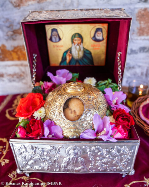 Όπως κάθε χρόνο στην διάρκεια της Θείας Λειτουργίας τέθηκε σε προσκύνηση η τιμία κάρα του Οσίου Δαβίδ του εν Ευβοία, την οποία μετέφερε ο Καθηγούμενος της ομώνυμης Ιεράς Μονής Αρχιμ. Γαβριήλ.