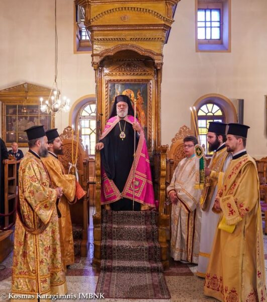 Χοροστάτησε στον Όρθρο, προεξήρχε της Θείας Λειτουργίας και κήρυξε το θείο λόγο ο Σεβασμιώτατος Μητροπολίτης Σύρου, Τήνου, Άνδρου, Κέας και Μήλου κ. Δωρόθεος, ενώ έλαβαν μέρος οι Σεβασμιώτατοι Μητροπολίτες Ιωαννίνων κ. Μάξιμος και Βεροίας, Ναούσης και Καμπανίας κ. Παντελεήμων.