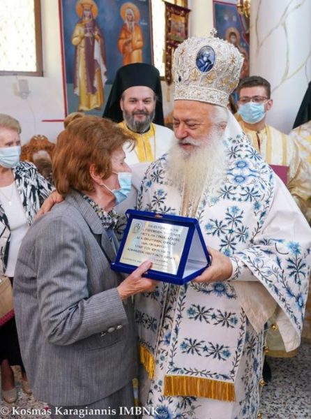 Παράλληλα, ο Σεβασμιώτατος Μητροπολίτης κ. Παντελεήμων, απένειμε εκ μέρους του εκκλησιαστικού συμβουλίου τιμητική πλακέτα στην κ. Γενοβέφα Τσιούλιου για την πολυετή προσφορά της στην ενορία του Σελίου αλλά και για τη μεγάλη οικονομική ενίσχυση για την αγιογράφηση και αρμολόγηση του Ιερού Ναού.