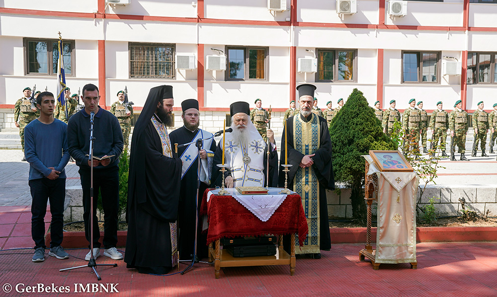 Ο Ποιμενάρχης μας κ. Παντελεήμων αναφέρθηκε στον Άγιο Γεώργιο, ως σύμβολο ακατάβλητης πίστης και ανδρείας, ιδιότητες που καθοδηγούν διαχρονικά τη θητεία του Έλληνα στρατιώτη.