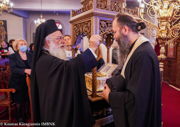 Έτσι και εχθές, Τρίτη 6 Οκτωβρίου, τελέστηκε ο Εσπερινός και η παράκληση του Αγίου χοροστατούντος του Σεβασμιωτάτου Μητροπολίτου Βεροίας, Ναούσης και Καμπανίας κ. Παντελεήμονος, ο οποίος κήρυξε το θείο λόγο και όπως κάθε Τρίτη ανέγνωσε τα νέα θαύματα του Αγίου που αποστέλλονται στην Ιερά Μονή και την σχετική ευχή, ενώ ο εφημέριος του Ιερού Ναού έχρισε με το λάδι από την καντήλα του Αγίου όλους τους προσκυνητές.