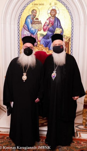 Ο Σεβασμιώτατος κ. Παντελεήμων καλωσόρισε με θέρμη και εγκαρδιότητα τον νέο Μητροπολίτη Κινσάσας κ. Θεοδόσιο και ευχήθηκε αδελφικώς στον ομογάλακτο Μητροπολίτη, καθώς αμφότεροι είναι απόφοιτοι της Αθωνιάδος Σχολής, για τη νέα του διακονία.