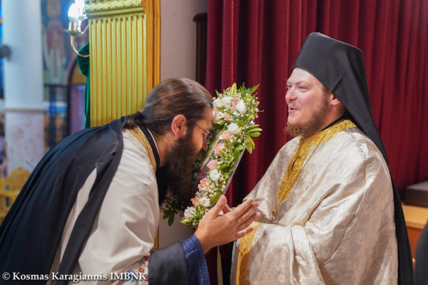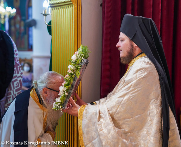 Πριν την έναρξη του Εσπερινού ο Σεβασμιώτατος Μητροπολίτης κ. Παντελεήμων μετέφερε τεμάχιο Ιερού Λειψάνου του Οσίου Αμφιλοχίου του εν Πάτμω, ευλαβή δωρεά του Αρχιερατικού Επιτρόπου Βεργίνης και προϊσταμένου του πανηγυρίζοντος Ιερού Ναού Αρχιμ. Ιερεμία Γεωργαλή.