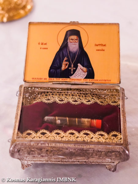 Φιαλίδιο με αίμα του Οσίου Πορφυρίου του Καυσοκαλυβίτου στην Παναγία Δοβρά