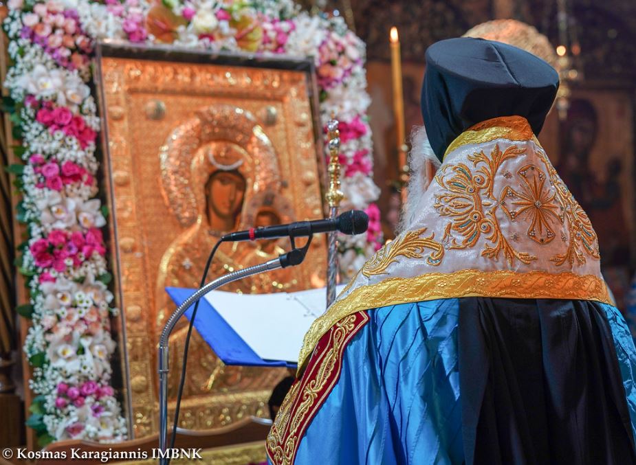 Καί μαζί μέ τίς εὐχαριστίες μας, μαζί μέ τά ἐγκώμια τῶν ἱερῶν ὑμνογράφων, μέ τά ὁποῖα καταστέφουμε τή χάρη της, τῆς ἀπευθύναμε πρίν ἀπό λίγο καί μία καταληκτήρια ἱκεσία, μία ἱκεσία πού ἀφορᾶ τό παρόν καί τό μέλλον, τό δικό μας ἀλλά καί ὅλων τῶν ἀνθρώπων.