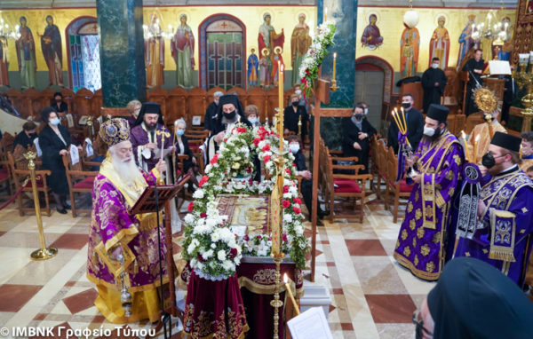Η περιφορά του Επιταφίου έγινε στο προαύλιο του Ιερού Ναού από τον Σεβασμιώτατο και το ιερατείο.