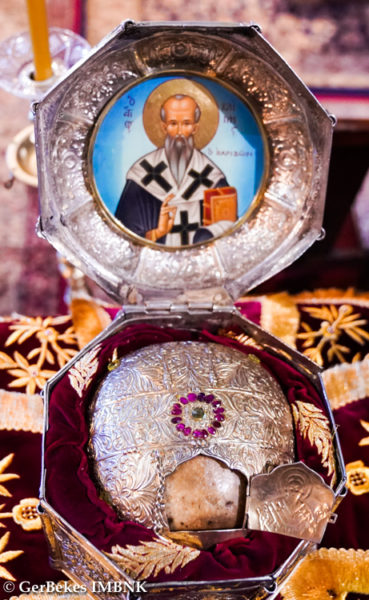 Στη διάρκεια της Θείας Λειτουργίας τέθηκε σε προσκύνηση η Τιμία Κάρα του Αγίου Κλήμεντος που αποθησαυρίζεται στην Ιερά Μονή.