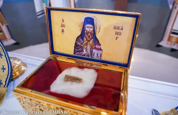 «Ας προσέξουμε, λοιπόν, και ας μιμηθούμε το παράδειγμα του εορταζόμενου και τιμωμένου σήμερα οσίου Νικάνορος, ώστε διά των πρεσβείων του να αξιωθούμε και εμείς της σωτηρίας και της βασιλείας των ουρανών, την οποία απολαμβάνει ο όσιος κοντά στον μεταμορφωθέντα Κύριό μας», τόνισε.