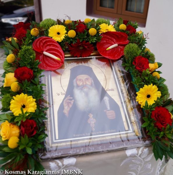 Στο τέλος της σημερινής Θείας Λειτουργίας τελέστηκε μνημόσυνο για τον μακαριστό εφημέριο π. Αθανάσιο Καραγκιοζόπουλο, ο οποίος διακόνησε στην ενορία επί 25 συναπτά έτη, ενώ εκ μέρους του Εκκλησιαστικού Συμβουλίου ο κ. Απόστολος Εμμανουηλίδης, κατά σάρκα αδελφός του Καθηγουμένου της Ιεράς Μονής του Οσίου Δαυίδ Ευβοίας Αρχιμ. Γαβριήλ Εμμανουηλίδη, προσέφερε στον Σεβασμιώτατο μία εικόνα του εορταζομένου Αγίου.
