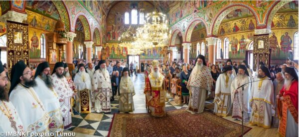 Και καθώς ατενίζω το Ιερό Θυσιαστήριο και την αγία κόγχη που το περιβάλλει, το βλέμμα μου σταματά σε μία ιερή μορφή. Το ιεροπρεπές του σχήματος, το αρχιερατικό ωμοφόριο, τα ευλογημένα άμφια και ο κεκοσμημένος στέφανος στην ιερά κεφαλή παραπέμπουν σε κάτι υπερβατικό, ουράνιο. Παρά ταύτα, ανήκει στην γη αλλά έχει λάβει από τον Θεό το χάρισμα καθώς υψώνει τα χέρια του να κατεβάζει τον ουρανό στην γη και να μεταποιεί τους γήινους ανθρώπους σε λειτουργούς των ουρανίων μυστηρίων. Είναι ο Επίσκοπος, ο Μητροπολίτης και Ποιμενάρχης της τοπικής μας Εκκλησίας. Ακόμη από τα χρόνια της παιδικής μου ηλικίας, αυτή ήταν η εικόνα που είχα για τον σεβαστό Γέροντα μου. Πάντοτε τον έβλεπα μπροστά στην Αγία Τράπεζα να λειτουργεί και να αγιάζει το ποίμνιο. Και αυτήν την εικόνα είχα την μεγάλη ευλογία να εντυπώνω μέσα μου και να αποτυπώνω στα τέσσερα αυτά χρόνια που μου εμπιστεύθηκε την διακονία να τον ακολουθώ ως μέλος του γραφείου τύπου στις πολυάριθμες λατρευτικές του πράξεις. Πάντοτε γαλήνιος, προσηλωμένος, ενίοτε μεταρσιωμένος, προσηνής στο ποίμνιο, φλογερός στο λόγο, ακάματος στην ψαλμωδία, ποιμένας, πατέρας, Επίσκοπος.
