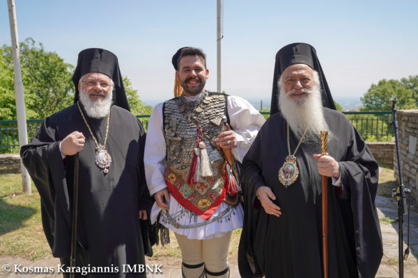 Εἴμεθα ἰδιαιτέρως εὐγνώμονες, γιατί τιμοῦν καί λαμπρύνουν μέ τήν παρουσία τους τίς ἐκδηλώσεις μας, παρά τίς δυσμενεῖς ὑγειονομικές συνθῆκες, δύο ἐκλεκτοί ἀρχιερεῖς τῆς Ἐκκλησίας τῆς Ἑλλάδος, ὁ Σεβασμιώτατος Μητροπολίτης Διδυμοτείχου, Ὀρεστιάδος καί Σουφλίου, κ. Δαμασκηνός, ὁ ὁποῖος ἐκπροσωπώντας τόν Μακαριώτατο Ἀρχιεπίσκοπο Ἀθηνῶν καί πάσης Ἑλλάδος κ.κ. Ἱερώνυμο καί τήν Ἱερά Σύνοδο, προεξῆρχε τῆς σημερινῆς ἀρχιερατικῆς θείας Λειτουργίας καί θά ἀναγνώσει στή συνέχεια τόν χαιρετισμό τοῦ Μακαριωτάτου Ἀρχιεπισκόπου καί τῆς Ἱερᾶς Συνόδου, καί ὁ Σεβασμιώτατος Μητροπολίτης Δημητριάδος καί Ἁλμυροῦ κ. Ἰγνάτιος, πρόεδρος τῆς Εἰδικῆς Συνοδικῆς Ἐπιτροπῆς πολιτιστικῆς ταυτότητος τῆς Ἱερᾶς Συνόδου τῆς Ἐκκλησίας τῆς Ἑλλάδος, ὁ ὁποῖος προεξῆρχε κατά τόν χθεσινό πανηγυρικό Ἑσπερινό.