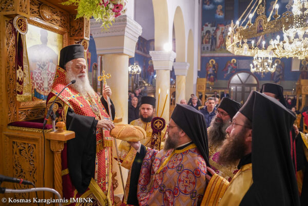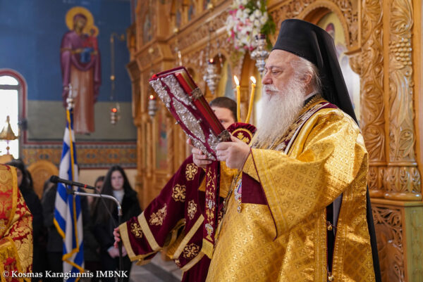 Ανήμερα της εορτής, το πρωί, ο Σεβασμιώτατος τέλεσε αρχιερατική θεία λειτουργία και κήρυξε το θείο λόγο.