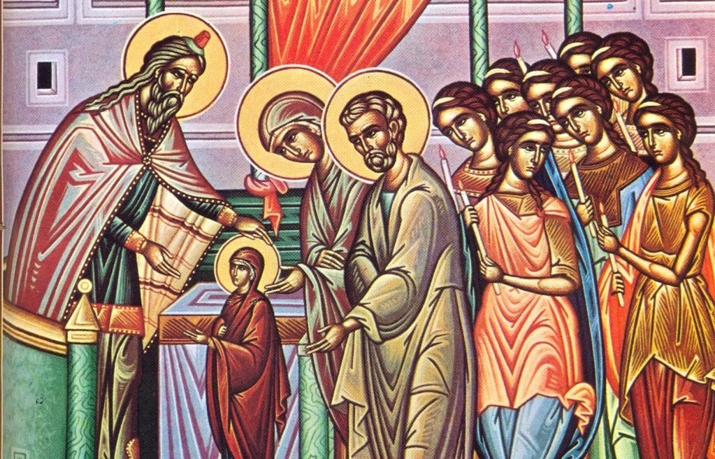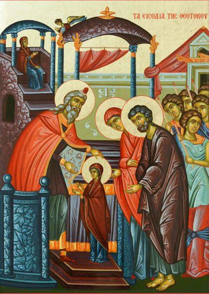 Χαρμόσυνοι οι ύμνοι της Εκκλησίας μας για το σημερινό γεγονός των Εισοδίων της Υπεραγίας Θεοτόκου. Χαρμόσυνοι, γιατί στο γεγονός αυτό, στο γεγονός της εισόδου της τριετίζουσας κόρης του Ιωακείμ και της Άννης στον ναό του Θεού και στα Άγια των Αγίων, διακρίνουν οι Πατέρες της Εκκλησίας μας και οι ιεροί υμνογράφοι την αρχή της αποφάσεως του Θεού να υλοποιήσει το σχέδιο της θείας οικονομίας για τη σωτηρία του ανθρώπου, την οποία και προαναγγέλλει στο πρόσωπο της θεόπαιδος Μαριάμ που εισέρχεται στον ναό του Κυρίου.