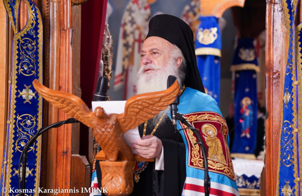 Ἔχουμε πολλούς λόγους νά τῆς ἀπευθύνουμε αὐτή τήν ἱκεσία, ἰδιαιτέρως τό διάστημα αὐτό, πού ἐκτός ἀπό τά προβλήματα καί τίς δοκιμασίες πού ἀντιμετωπίζει ὁ καθένας μας καί γιά τά ὁποῖα ἔχει κάθε λόγο νά ζητᾶ καί νά ἱκετεύει τή βοήθεια τῆς Κυρίας Θεοτόκου, ἔχουμε καί τά μεγάλα καί κοινά θέματα πού μᾶς ἀπασχολοῦν ὅλους καί πού δοκιμάζουν τήν πατρίδα μας καί πολλούς ἀδελφούς μας. Εἶναι οἱ δύο μεγάλοι κίνδυνοι, οἱ ὁποῖοι ἀπειλοῦν ὅλους μας ἀνεξαιρέτως καί οἱ ὁποῖοι, ὅπως δυστυχῶς βλέπουμε, εἶναι πολύ δύσκολο νά ἀποσοβηθοῦν μόνο μέ τίς ἀνθρώπινες δυνάμεις.