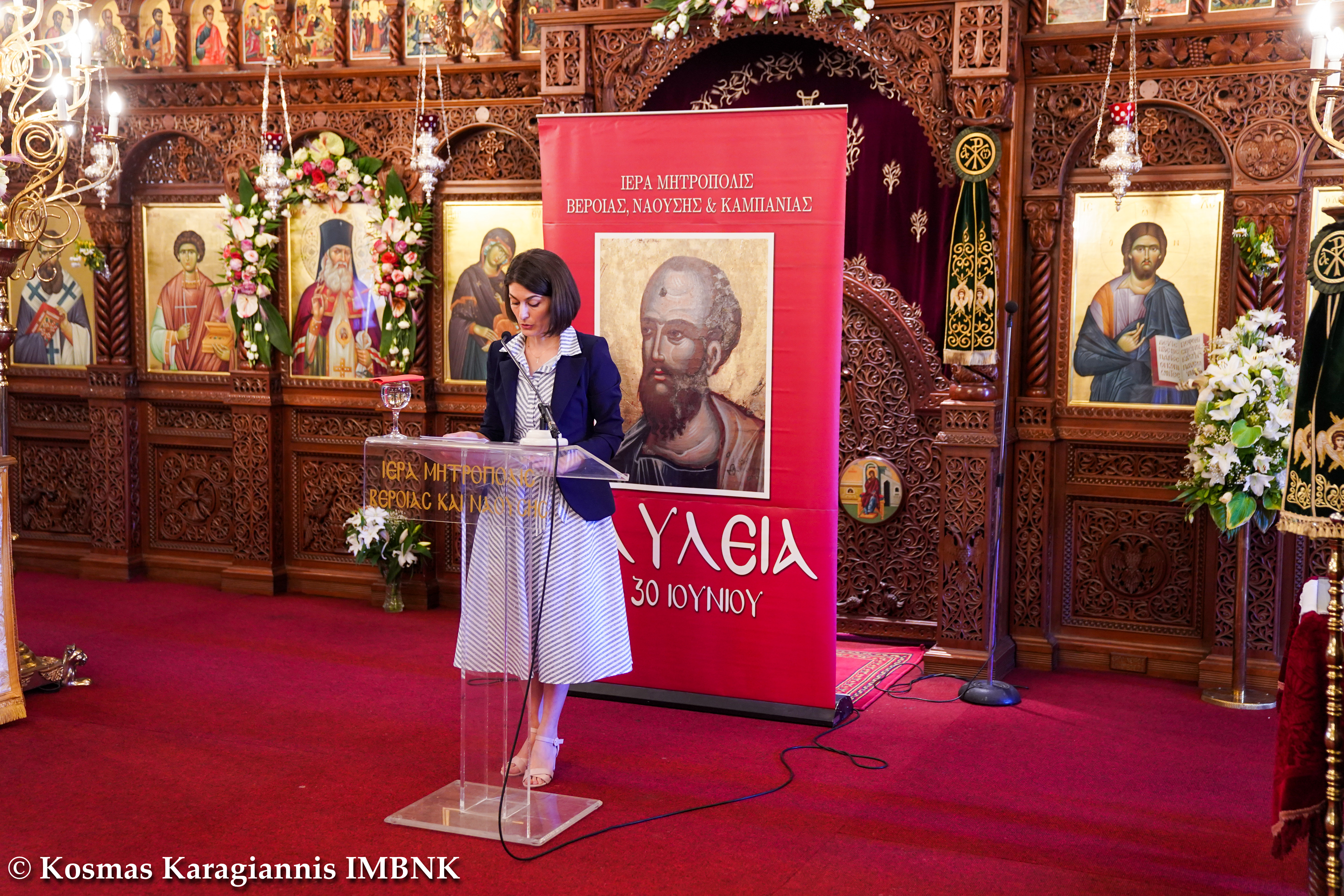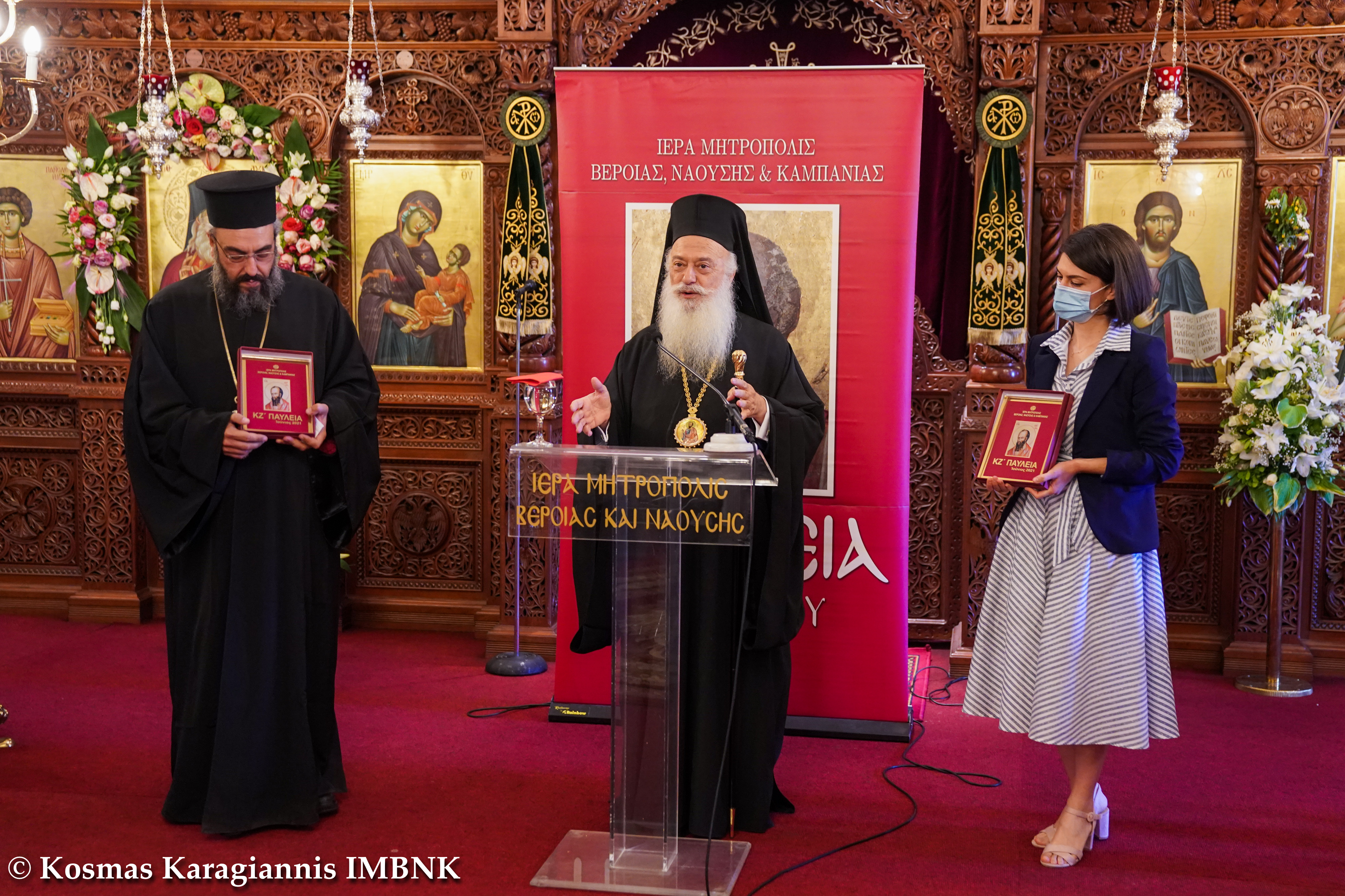 Τρίτος εισηγητής ήταν ο Σεβασμιώτατος Μητροπολίτης Βεροίας, Ναούσης και Καμπανίας κ. Παντελεήμων, ο οποίος ανέπτυξε το θέμα: «Η προσφορά των γυναικών στους αγώνες του 1821» και στο τέλος εξέφρασε τις ευχαριστίες του στους ομιλητές αλλά και σε όλους τους συμμετέχοντες.