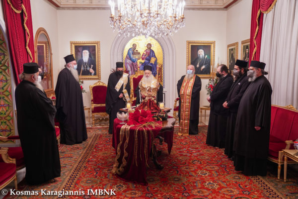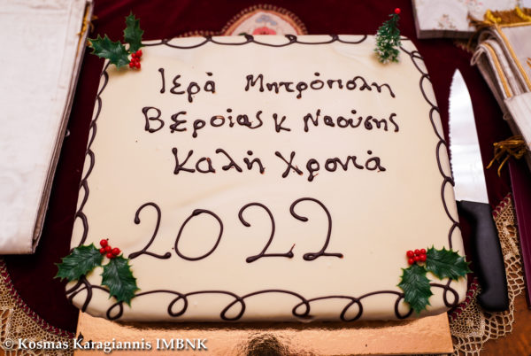Ο Σεβασμιώτατος Μητροπολίτης Βεροίας, Ναούσης και Καμπανίας κ. Παντελεήμων ευλόγησε και έκοψε την πρωτοχρονιάτικη βασιλόπιτα για τους εργαζομένους και τους διακονούντες στα γραφεία της Ιεράς Μητροπόλεως την Παρασκευή 31 Δεκεμβρίου 2021 το μεσημέρι στο Μητροπολιτικό Μέγαρο Βεροίας.