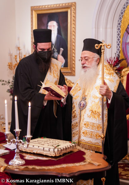 Ο Σεβασμιώτατος ευχήθηκε πατρικώς καλή και ευλογημένη χρονιά, χωρίς πειρασμούς, ενώ δεν παρέλειψε να εκφράσει τις θερμές ευχαριστίες του προς τους συνεργάτες του, με πρώτο τον Πρωτοσύγκελλο της Ιεράς Μητροπόλεως Αρχιμ. Αθηναγόρα Μπίρδα, για την προσφορά τους στο έργο της Ιεράς Μητροπόλεως.