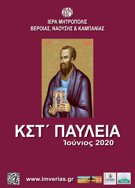 Από σήμερα, Δευτέρα 1 Ιουνίου 2020, ξεκινάει το πρόγραμμα εορτασμού των ΚΣτ’ Παυλείων από την Ιερά Μητρόπολη Βέροιας, Ναούσης και Καμπανίας προς τιμή του ιδρυτού της τοπικής Εκκλησίας του Αποστόλου Παύλου.