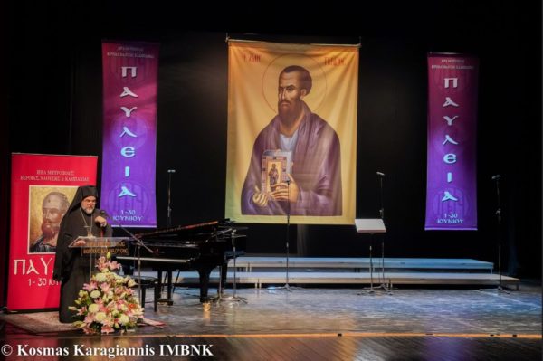 Θά ἤθελα πρωτίστως νά ἐκφράσω τίς θερμότατες εὐχαριστίες καί τή βαθύτατη εὐγνωμοσύνη μου πρός τόν Παναγιώτατο Οἰκουμενικό Πατριάρχη κ.κ. Βαρθολομαῖο γιά τό σεπτό Πατριαρχικό του μήνυμα καί τήν ἀποστολή ὡς ἐκπροσώπου του στό Συνέδριο καί τίς λατρευτικές ἐκδηλώσεις πρός τιμήν τοῦ ἀποστόλου Παύλου, τοῦ Σεβασμιωτάτου Μητροπολίτου Σμύρνης κ. Βαρθολομαίου.