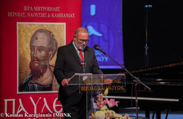 Στη συνέχεια απηύθυναν χαιρετισμό η εκπρόσωπος του Αντιπεριφερειάρχου Ημαθίας κ. Κωνσταντίνου Καλαϊτζίδη, ο Δήμαρχος Βεροίας κ. Κωνσταντίνος Βοργιαζίδης και εκ μέρους της Επιστημονικής Επιτροπής των Παυλείων ο Ομοτ. Καθηγητής της Θεολογικής Σχολής του Α.Π.Θ. κ. Χαράλαμπος Ατματζίδης.