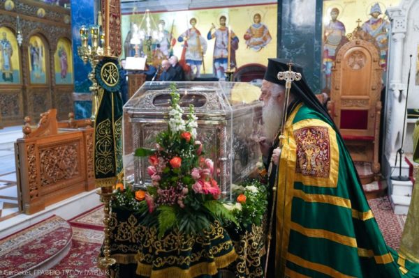 Δυστυχῶς πολύ συχνά ξεχνοῦμε καί δέν δίδουμε καμία σημασία στήν αἰώνιο ζωή. Νομίζουμε ὅτι ὅλα ἀρχίζουν καί τελειώνουν ἐδῶ, καί ἔστω καί ἐάν ἐρχόμεθα στούς ναούς καί τιμοῦμε τίς μνῆμες τῶν ἁγίων μας, δέν σκεπτόμεθα ὅτι τούς τιμοῦμε, διότι οἱ ἅγιοί μας δέν εἶναι νεκροί, δέν εἶναι ἀπόντες. Κληρονόμησαν τήν αἰώνιο ζωή, γι᾽ αὐτό καί εἶναι παρόντες μέσα στήν Ἐκκλησία μας, μέσα στή ζωή μας, μέσα στή ζωή τῶν πιστῶν πού τούς ἐπικαλοῦνται. Εἶναι παρόντες μέ τά ἱερά λείψανά τους, μέ τά θαύματά τους καί μέ τίς πρεσβεῖες τους. Εἶναι παρών ὁ πολιοῦχος μας, ὁ ἅγιος Ἀντώνιος ὁ νέος, τοῦ ὁποίου ἔχουμε ἐνώπιόν μας τά ἱερά λείψανα καί τήν εὐλογία τῶν θαυμάτων του. Καί εἶναι παρών, γιατί εἶναι κληρονόμος τῆς αἰωνίου ζωῆς. Εἶναι παροῦσα ἡ Μητέρα τοῦ Κυρίου μας, ἡ Ὑπεραγία Θεοτόκος, ἡ ὁποία ὑπῆρξε καί αὐτή ἄνθρωπος σέ αὐτή τή ζωή, καί μάλιστα ἄνθρωπος ὁ ὁποῖος ἐτήρησε μέ κάθε ἀκρίβεια τόν νόμο τοῦ Θεοῦ. Ἔτσι ἔχουμε ἐδῶ τή χαριτόβρυτη εἰκόνα της, τή θαυματουργό Παναγία τῆς Δοβρᾶ.