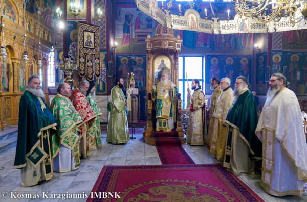“Ας παραδειγματισθούμε και εμείς από τον ζήλο και την αυταπάρνηση του εορταζομένου μεγαλου αγίου της Εκκλησίας μας, του οσίου Πορφυρίου, και ας επαναξετάσουμε τις επιλογές της ζωής μας και την πορεία μας, για να αξιωθούμε και εμείς με τις πρεσβείες του οσίου Πορφυρίου, ο οποίος είναι παρών και αυτή τη στιγμή εδώ, ανάμεσά μας, με το χαριτόβρυτο αίμα του, το οποίο έχουμε την ευλογία να θέτουμε εις προσκύνηση, να φθασουμε στα «φωτεινά σκηνώματα» της βασιλείας του Θεού, τα οποία και ο ίδιος απολαμβάνει. Και θα φθάσουμε, όταν και εμείς θα προσπαθήσουμε, αγαπώντας τον Θεό, να τηρήσουμε τις εντολές του, να δείξουμε αυτή την πραγματική αγάπη για την ουράνια βασιλεία, η οποία έχει ετοιμασθεί για όσους αγαπούν τον Θεό”, είπε μεταξύ άλλων ο Σεβασμιώτατος στο κήρυγμά του.