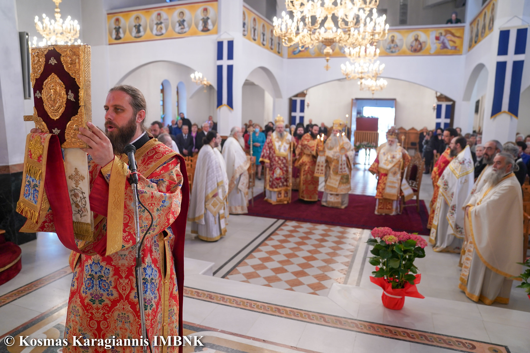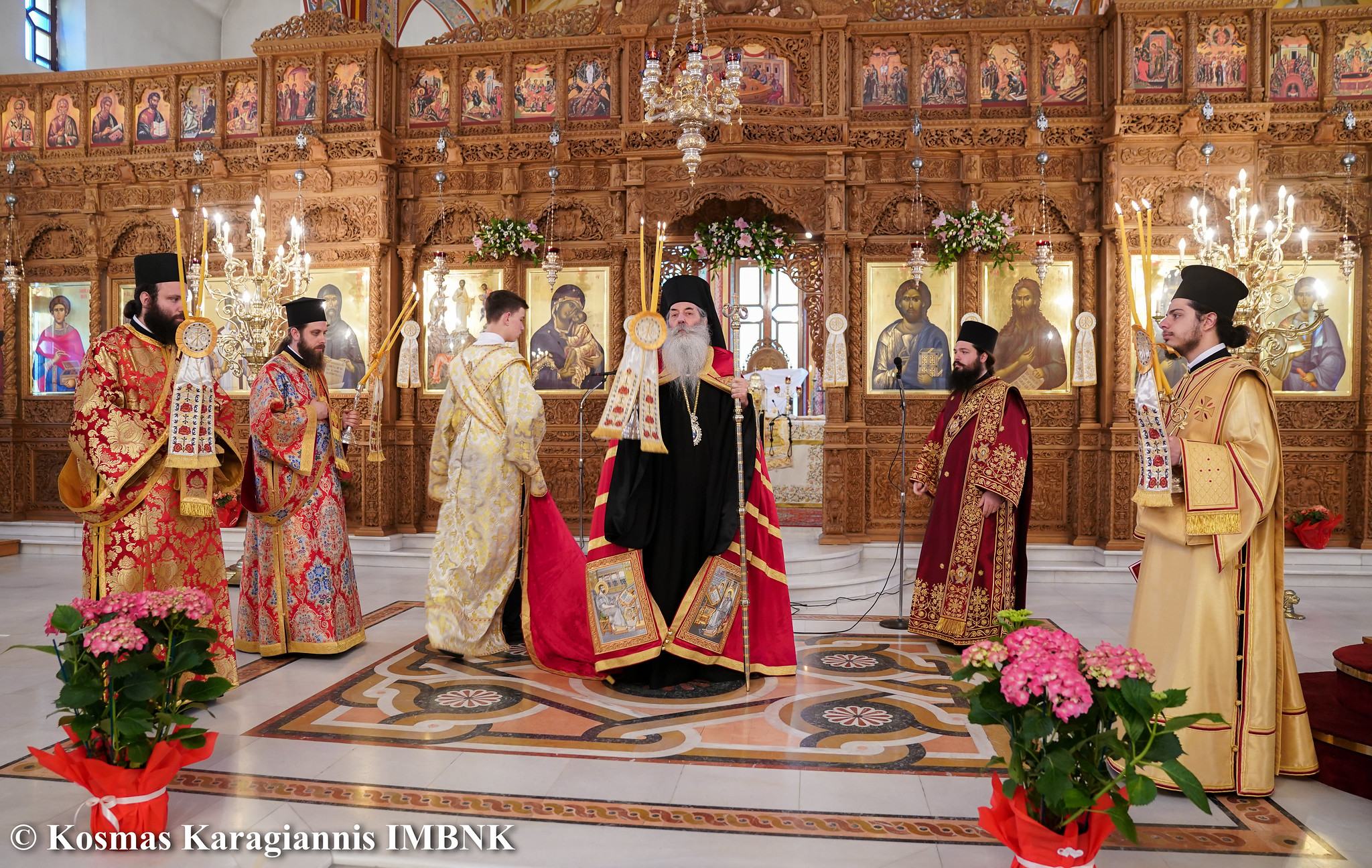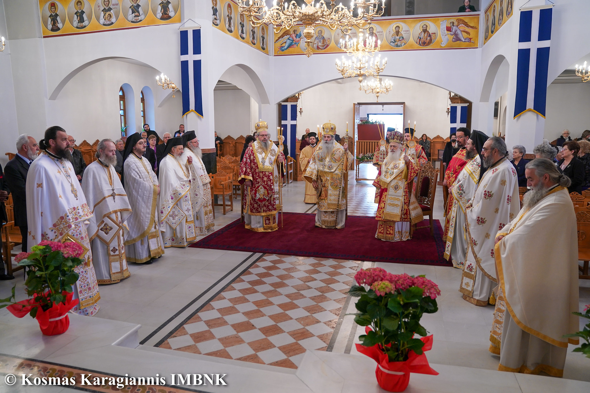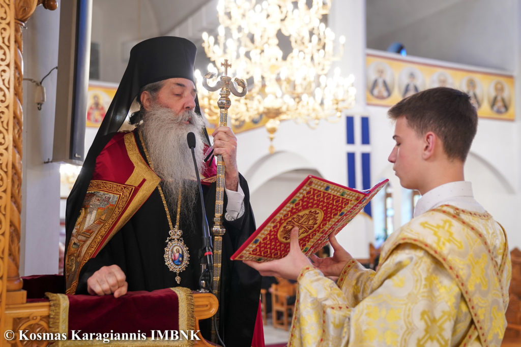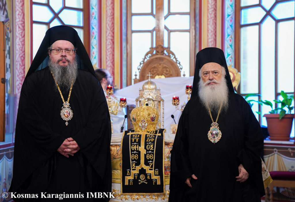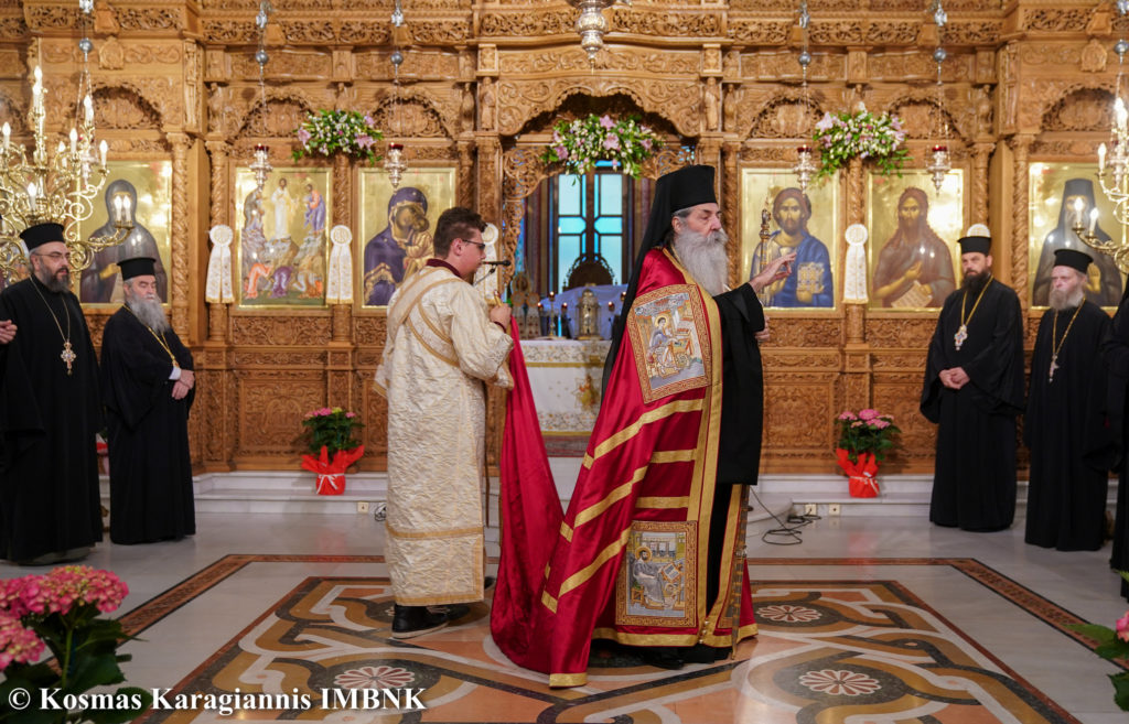 Στο Πολυαρχιερατικό Συλλείτουργο που τελέστηκε προεξήρχε ο Σεβασμιώτατος Μητροπολίτης Πειραιώς και Φαλήρου κ. Σεραφείμ, ο οποίος χοροστάτησε και στον Όρθρο και κήρυξε τον θείο λόγο και συμμετείχαν ο  Μητροπολίτης Λαρίσης και Τυρνάβου κ. Ιερώνυμος και ο  Μητροπολίτης Βεροίας, Ναούσης και Καμπανίας κ. Παντελεήμων.