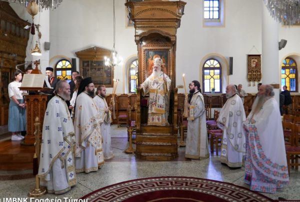 Την Κυριακή 18 Ιουνίου (Κυριακή των Αγιορειτών Πατέρων) ο Σεβασμιώτατος Μητροπολίτης Βεροίας, Ναούσης και Καμπανίας κ. Παντελεήμων λειτούργησε και κήρυξε τον θείο λόγο στον Ιερό Ναό Κοιμήσεως Θεοτόκου Ναούσης, όπου τιμάται ιδιαιτέρως η μνήμη των Αγιορειτών Πατέρων καθώς θησαυρίζεται η τιμία Κάρα του πολιούχου της πόλεως, Οσίου Θεοφάνους και υπάρχει το πρώτο παρεκκλήσιο του Οσίου Γερασίμου του Υμνογράφου – Μικραγιαννανίτου.