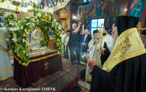 Στον Πολυαρχιερατικό Εσπερινό χοροστάτησε ο Σεβασμιώτατος Μητροπολίτης Μάνης κ. Χρυσόστομος και συμμετείχαν οι Σεβασμιώτατοι Μητροπολίτες Ιλίου, Αχαρνών και Πετρουπόλεως κ. Αθηναγόρας, ο οποίος κήρυξε τον θείο λόγο, Νικοπόλεως και Πρεβέζης κ. Χρυσόστομος, Λαγκαδά, Λητής και Ρεντίνης κ. Πλάτων και ο Ποιμενάρχης Σεβασμιώτατος Μητροπολίτης Βεροίας, Ναούσης και Καμπανίας κ. Παντελεήμων.