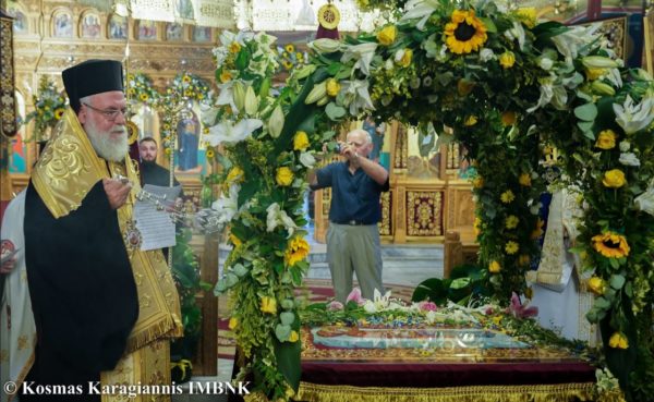 Μεθεόρτιος Πανηγυρικός Εσπερινός τελέστηκε το εσπέρας της Τρίτης, 15ης Αυγούστου, στον πανηγυρίζοντα Ιερό Μητροπολιτικό Ναό Κοιμήσεως της Θεοτόκου Αλεξανδρείας. Στη συνέχεια εψάλησαν τα εγκώμια προς την Υπεραγία Θεοτόκο.