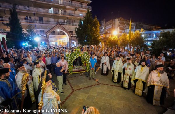 Ακολούθησε Ιερά Λιτανεία του Επιταφίου της Παναγίας στους δρόμους της πόλεως, με τη συμμετοχή τοπικών πολιτικών και στρατιωτικών αρχών και πλήθους ευσεβών πιστών, ενώ της εκκλησιαστικής τάξεως επιμελήθηκε ο Αρχιερατικός Επίτροπος Αλεξανδρείας και προϊστάμενος του πανηγυρίζοντος Ιερού Ναού Αρχιμ. Διονύσιος Ανθόπουλος.