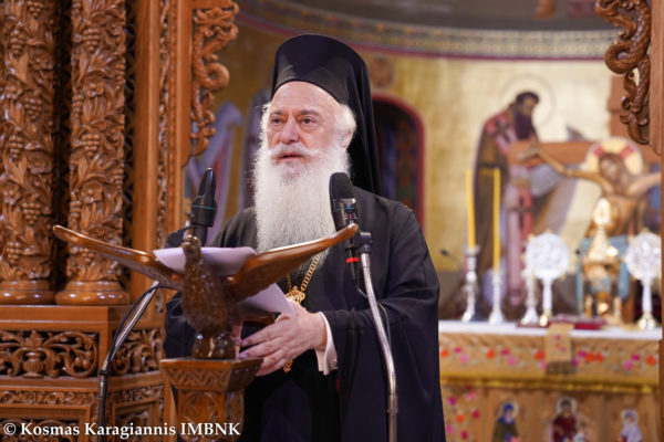 Αὐτή τή χαρά εἶχε στήν πληρό­τητά της ἡ Ὑπεραγία Θεοτόκος ὡς Μητέρα τοῦ Κυρίου μας, καί ἀπό αὐτήν τήν παρακαλέσαμε σήμερα νά δίδει καί σέ μᾶς, γιά νά ἀπο­διώξει ἀπό τήν ψυχή μας τή θλίψη καί τήν ἀνησυχία πού προκαλοῦν τόσο οἱ συνεχιζόμενες πυρκαϊές καί οἱ καταστροφικές τους συνέ­πει­ες ὅσο καί ἡ ἀναζωπύρωση τῆς πανδημίας, πού ζοῦμε ἐδῶ καί δύο χρόνια.