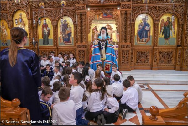 Μαθητές της Γ’ Τάξης του 5ου Δημοτικού Σχολείου Βέροιας έψαλλαν στους χθεσινούς χαιρετισμούς δημιουργώντας με τις παιδικές φωνούλες τους μία ιδιαίτερη ατμόσφαιρα. Πιο συγκεκριμένα την Παρασκευή 5 Απριλίου το απόγευμα o Σεβασμιώτατος Μητροπολίτης Βεροίας, Ναούσης και Καμπανίας κ. Παντελεήμων χοροστάτησε και κήρυξε τον θείο λόγο στην Δ’ Στάση των Χαιρετισμών της Υπεραγίας Θεοτόκου στον Ιερό Ναό Αγίου Αντωνίου Πολιούχου Βεροίας. Στην ακολουθία έψαλλε η Βυζαντινή Χορωδία «Ακαδημία Ψαλτικής Ειρμός» υπό την διεύθυνση του κ. Σπυρίδωνα Ασπιώτη, μαζί με μαθητές της Γ΄ Τάξης του 5ου Δημοτικού Σχολείου Βέροιας, υπό την διεύθυνση της διδάσκουσας μουσικού κ. Αμανατοπούλου Χριστίνας. Στο τέλος ο Σεβασμιώτατος ευχαρίστησε και συνεχάρη τα παιδιά, τους γονείς και τους υπευθύνους και των δύο χορωδιών και ευχήθηκε σε όλους η Παναγία μας, να μας προστατεύει και να μας διαφυλάσσει πάντοτε.