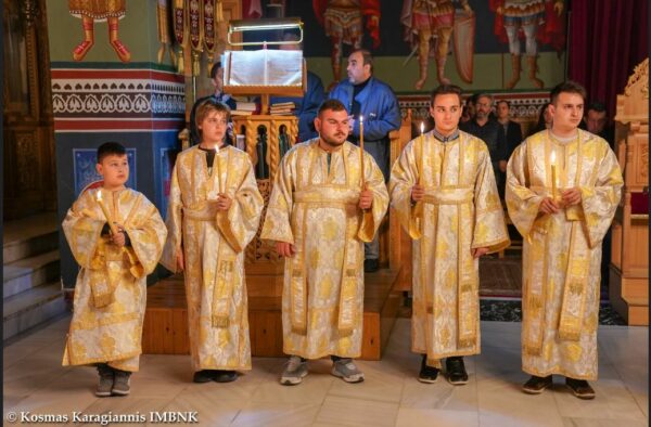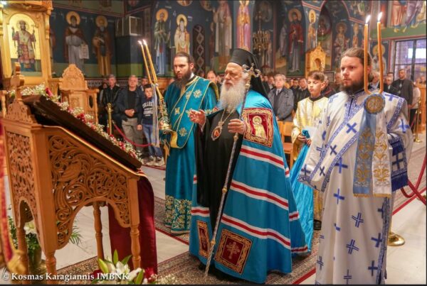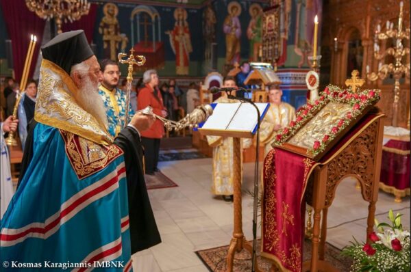 Σάββατο τοῦ Ἀκαθίστου, καί ἐμεῖς ἀγρυπνήσαμε ἀπόψε ἐδῶ, στόν ναό τοῦ ἁγίου Μηνᾶ, σέ μία ἀγρυπνία εὐχαριστίας καί εὐγνωμοσύνης πρός τήν Παναγία μας, πρός τήν Ὑπεραγία Θεοτόκο, τήν Ὑπέρμαχο Στρατηγό τοῦ Γένους μας, καθώς ἡ ἡμέρα αὐτή, ἡ ἑορτή αὐτή συνδέεται μέ ἕνα ἱστορικό γεγονός, πού μᾶς μεταφέρει αἰῶνες πίσω. Μᾶς μεταφέρει στήν ἐποχή κατά τήν ὁποία οἱ πατέρες μας μέ δάκρυα χαρᾶς καί εὐγνωμοσύνης εὐχαριστοῦσαν ὁλόκληρη τή νύχτα, ὄρθιοι, ἀκάθιστοι, σέ ἔνδειξη τιμῆς καί σεβασμοῦ, τήν προστάτιδα τῆς Πόλεως, τήν Παναγία, πού τούς εἶχε σώσει ἀπό τή βέβαιη καταστροφή.