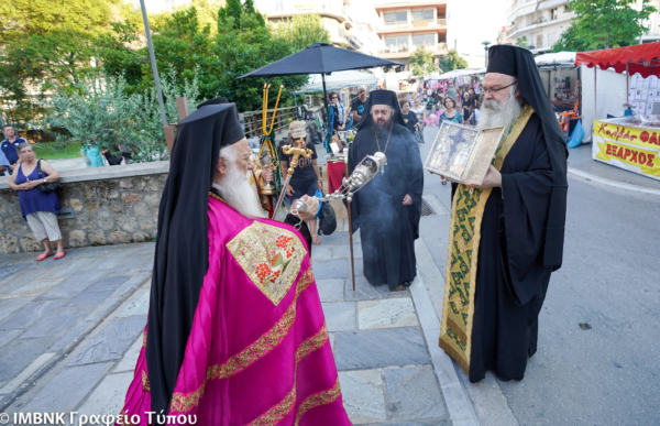 Αυτό το γεγονός τιμούμε και εμείς, κατά την παράδοση της τοπικής μας Εκκλησίας, υποδεχόμενοι απόψε τον τίμιο Σταυρό από το Ιερό προσκύνημα της Παναγίας Σουμελά στον ναό του πολιούχου μας αγίου Αντωνίου, για να τον προσκυνήσουμε και να λάβουμε τη χάρη του, τιμώντας μαζί του και τη μνήμη των αγίων επτά Μακκαβαίων παίδων, του διδασκαλου τους Ελεαζάρου και της μητέρας τους αγίας Σολομονής, και να τον παρακαλέσουμε να μας φυλάττει από κάθε κακό και από κάθε απειλή και να αγιάζει τη ζωή μας, τις πράξεις μας και τον κόσμο μας.