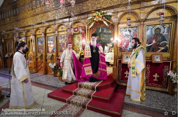 Κατά τη διάρκεια της Θείας Λειτουργίας, η οποία τελέσθηκε την Παρασκευή 19 Αυγούστου 2022, τέθηκε σε προσκύνηση η Τιμία Κάρα του Οσίου Θεοφάνους, η οποία φυλάσσεται στον Ιερό Ναό. Στον ίδιο ναό αποθησαυρίζεται η Θαυματουργός εικόνα της Παναγίας «Παντανάσσης»,