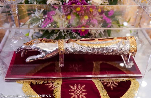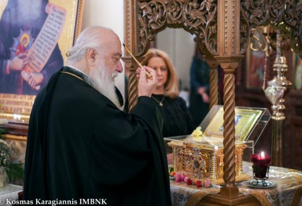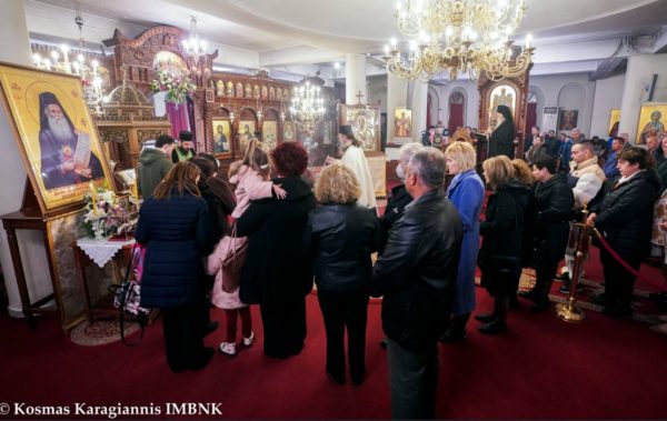 Ἀπόψε ἔχουμε τήν εὐλογία μαζί μέ τό ἱερό καί θαυματουργό λείψανο τοῦ ἁγίου Λουκᾶ, ἀρχιεπισκόπου Συμφερουπόλεως, νά προσκυνοῦμε καί τό χαριτόβρυτο δεξιό χέρι τοῦ ὁσίου Γερασίου τοῦ Ὑμνογράφου, τοῦ ὁποίου ψάλαμε καί τήν Ἱερά Παράκληση, μέ τήν εὐκαιρία τῶν ἐγκαινίων τοῦ πρώτου πρός τιμήν του ἱεροῦ ναοῦ πού τελέσαμε σήμερα τό πρωί στήν Ἱερά μας Μονή.
