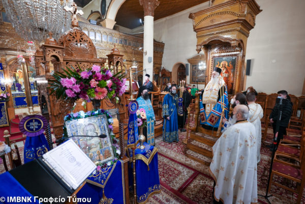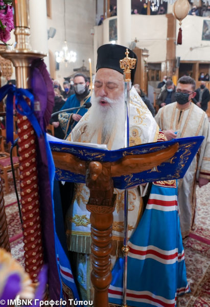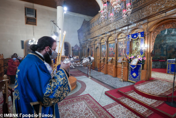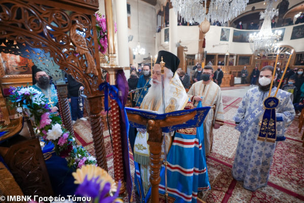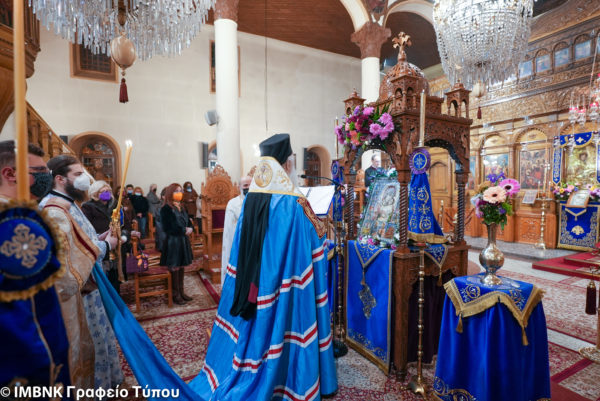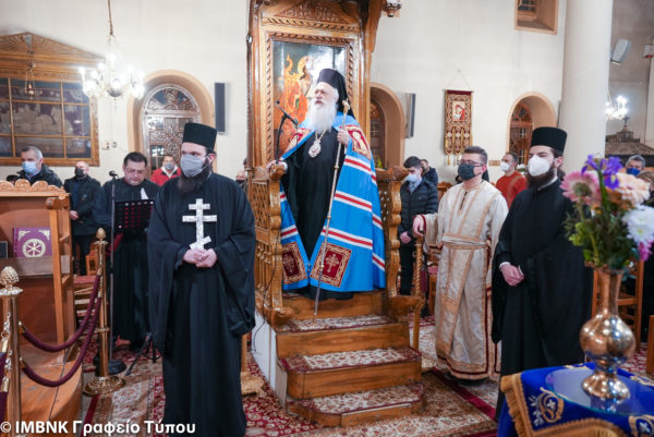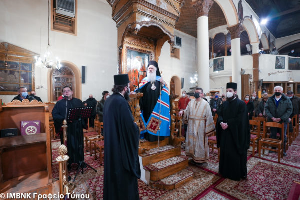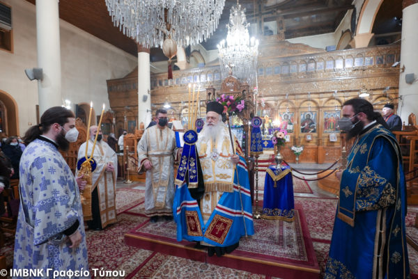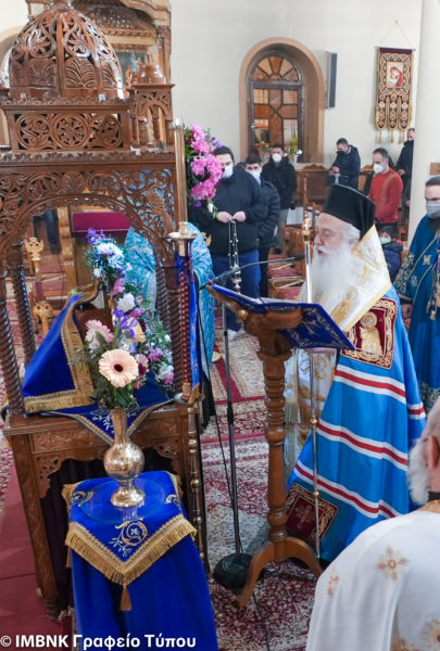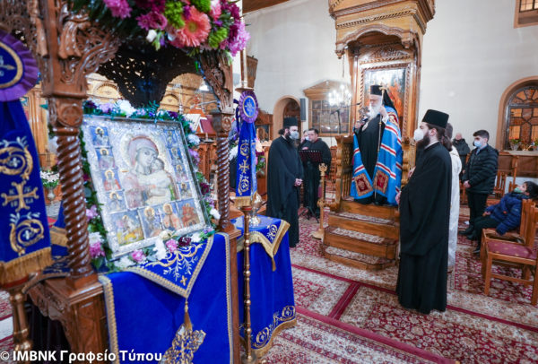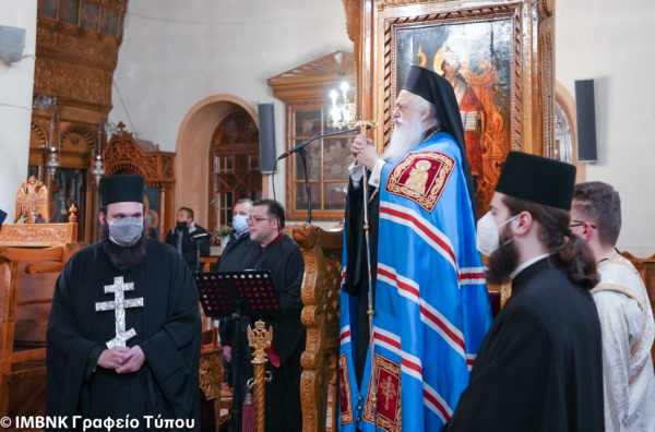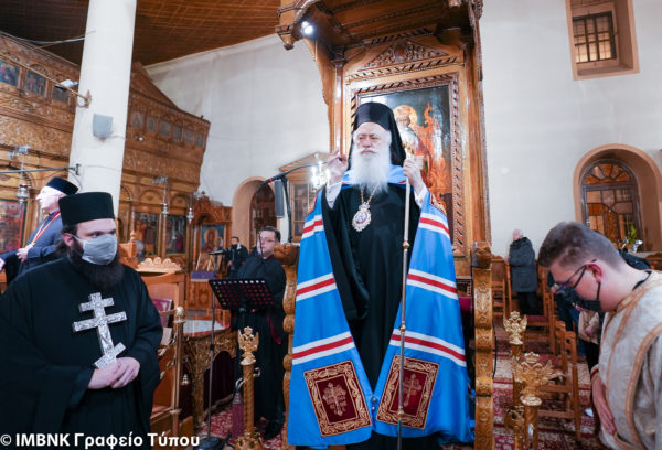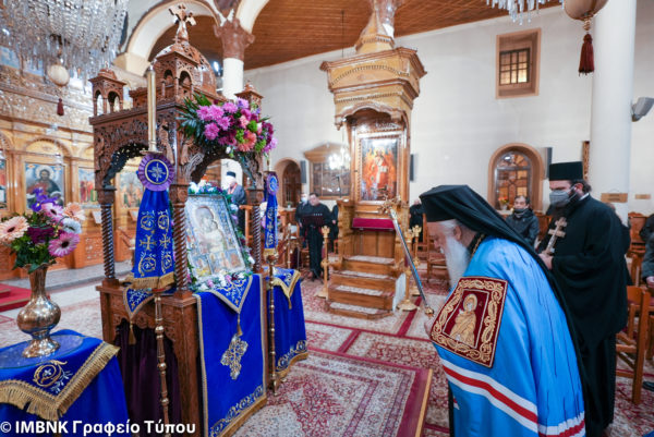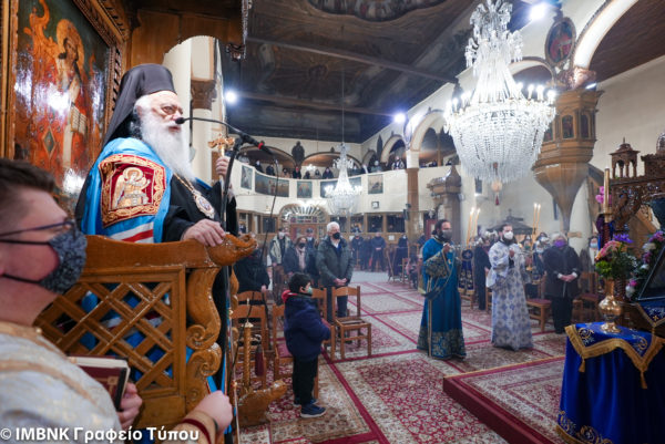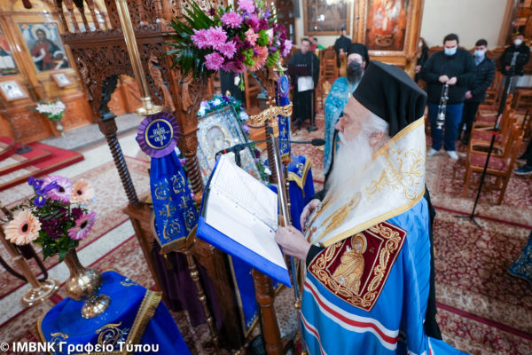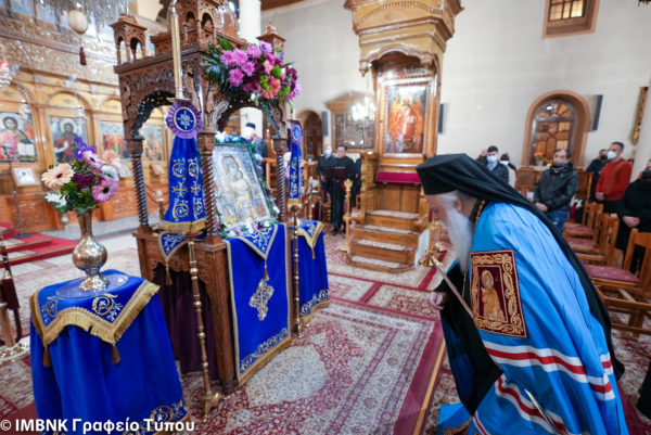 Ο Σεβασμιώτατος Μητροπολίτης Βεροίας, Ναούσης και Καμπανίας κ. Παντελεήμων χοροστάτησε το απόγευμα της Παρασκευής 11 Μαρτίου 2022 στην Α’ Στάση των Χαιρετισμών της Υπεραγίας Θεοτόκου και κήρυξε τον θείο λόγο στον Ιερό Ναό Κοιμήσεως της Θεοτόκου Ναούσης, όπου αποθησαυρίζεται η Θαυματουργός Ιερά Εικόνα της Παναγίας «Παντανάσσης».