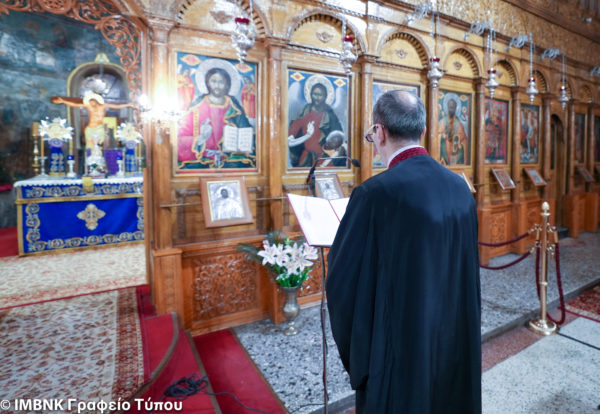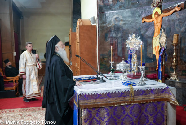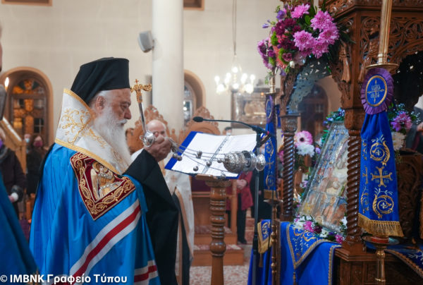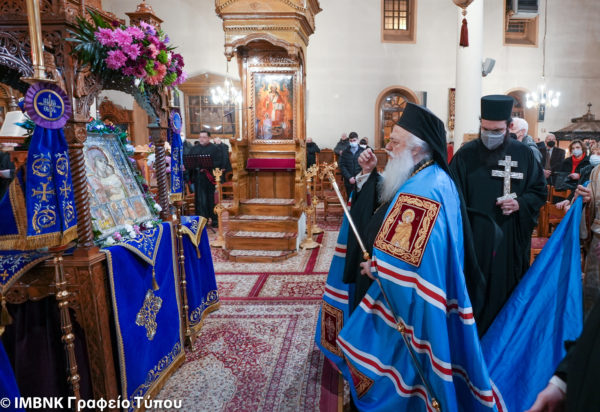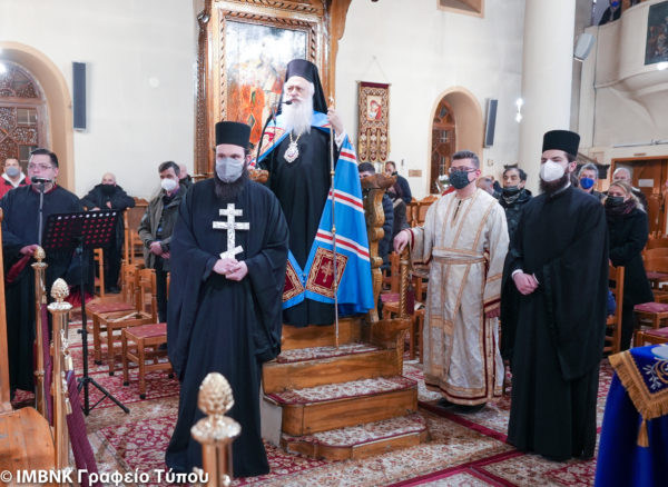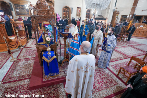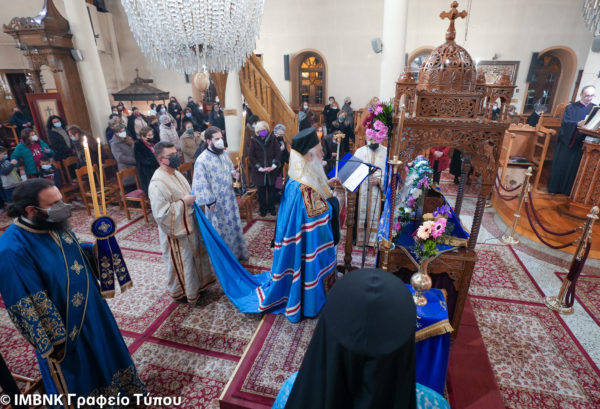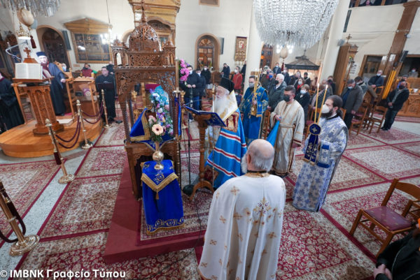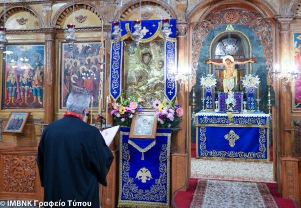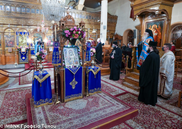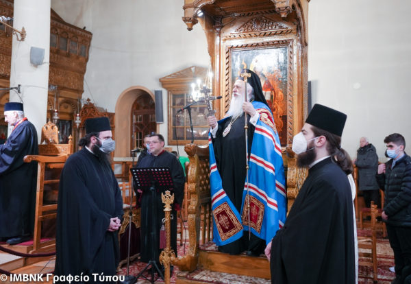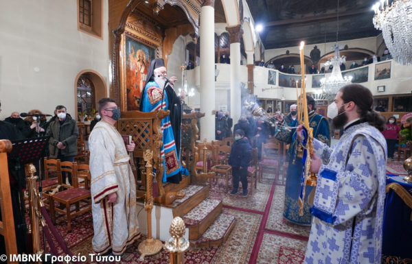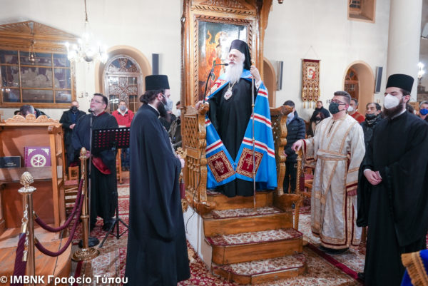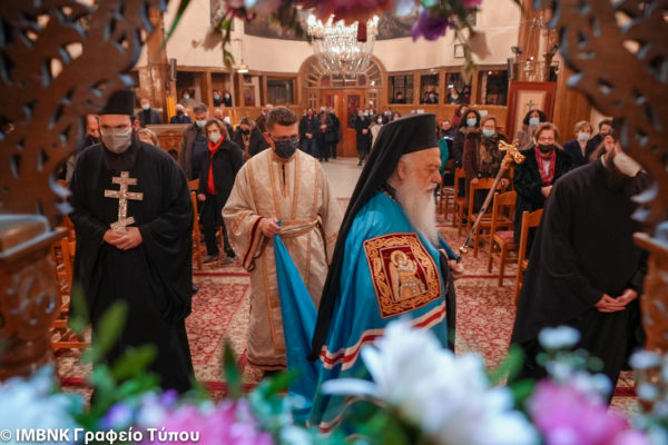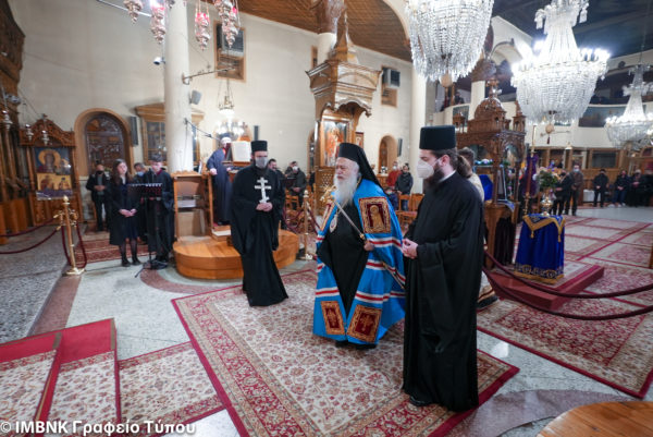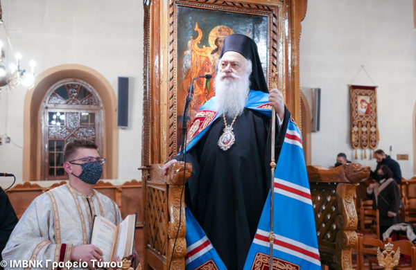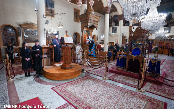 Ο Σεβασμιώτατος Μητροπολίτης Βεροίας, Ναούσης και Καμπανίας κ. Παντελεήμων χοροστάτησε το απόγευμα της Παρασκευής 11 Μαρτίου 2022 στην Α’ Στάση των Χαιρετισμών της Υπεραγίας Θεοτόκου και κήρυξε τον θείο λόγο στον Ιερό Ναό Κοιμήσεως της Θεοτόκου Ναούσης, όπου αποθησαυρίζεται η Θαυματουργός Ιερά Εικόνα της Παναγίας «Παντανάσσης».