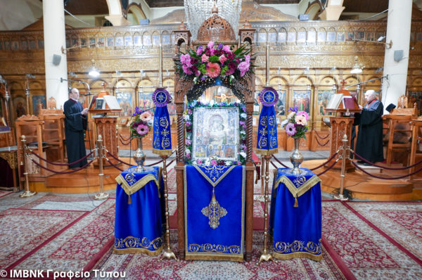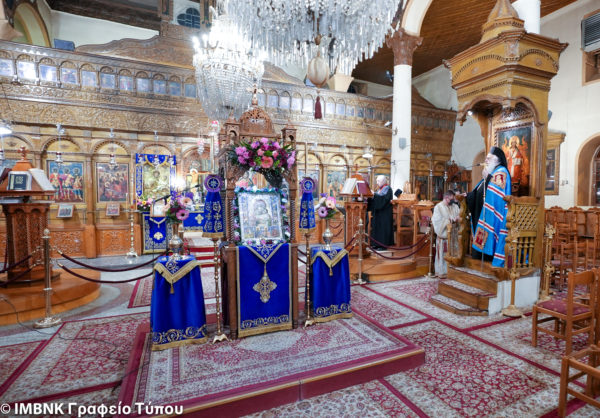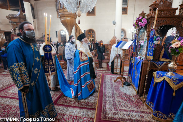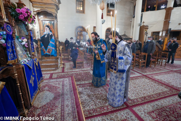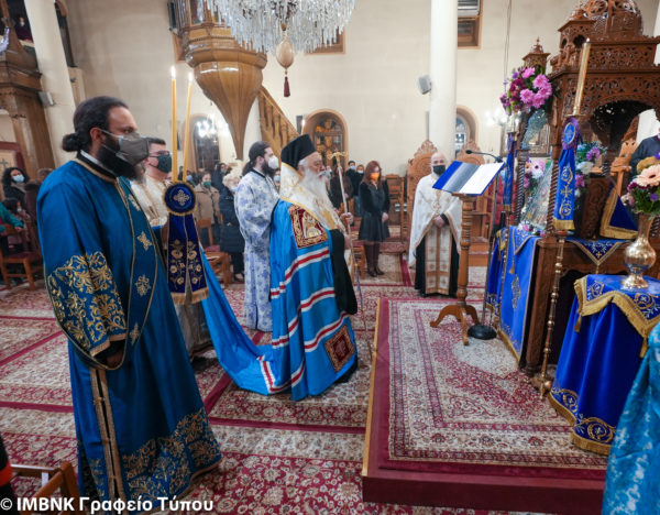 Αὐτή συγκέντρωσε καί ὅλους ἐμᾶς ἀπόψε στόν ἱερό ναό της, ὑπό τή σκέπη τῆς θαυματουργοῦ εἰκόνος της, τῆς Παντανάσσης, παραμονή τῆς 200ῆς ἐπετείου τῆς κηρύξεως τῆς ἐπαναστάσεως τῆς ἡρωικῆς πόλεώς μας, ὅπως θά ἔκαναν ἀσφαλῶς καί οἱ πρόγονοί μας, ἱκετεύοντάς την μαζί μέ τόν ἅγιο Θεοφάνη, γιά τήν ἐπιτυχία τοῦ ἀγῶνος των, ἀλλά καί ὅπως ἔκαναν οἱ πατέρες μας, πού συνέθεσαν καί τόν θεσπέσιο αὐτόν ὕμνο, τόν Ἀκάθιστο Ὕμνο, πρός τιμήν τῆς Ὑπερμάχου Στρατηγοῦ, παρακαλώντας την νά σώσει τόν Ἑλληνισμό ἀπό κάθε κίνδυνο πού τόν ἀπειλοῦσε.