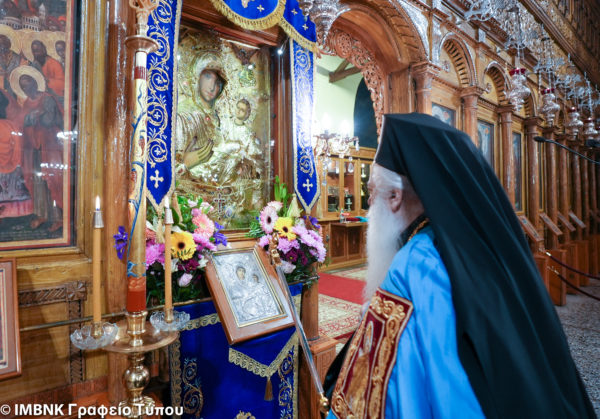 Καί καθώς ζοῦμε σέ ἕναν κόσμο στόν ὁποῖο κίνδυνοι καί ἀκοές κινδύνων καί προβλημάτων καί δυσχερειῶν μᾶς κατακλύζουν ἀπό παντοῦ, προστρέχουμε καί ἐμεῖς, ὅπως ἄλλοτε οἱ πατέρες μας, στήν ἀκαταίσχυντη ἐλπίδα καί προστασία τῆς Ὑπεραγίας Θεοτόκου, τῆς Παναγίας μας, καί τήν παρακαλοῦμε νά ἐλευθερώσει καί ἐμᾶς ἀπό κάθε κίνδυνο πού ἀπειλεῖ εἴτε τό σῶμα εἴτε τήν ψυχή μας, ἀπό κάθε κίνδυνο πού ἐλλοχεύει στή ζωή μας ὡς ἀτόμων καί ὡς συνόλου.