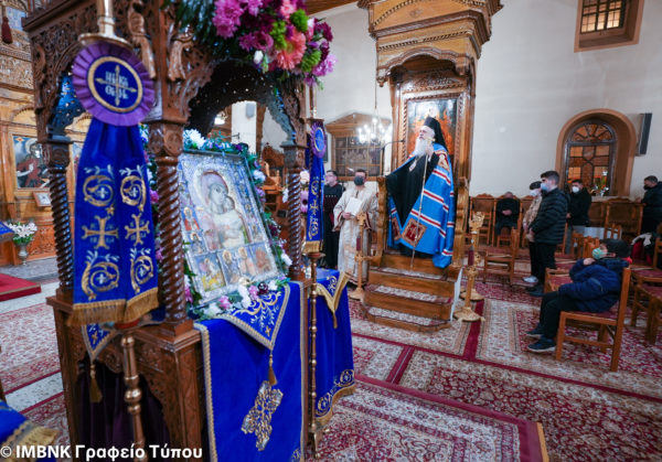 Ο Σεβασμιώτατος Μητροπολίτης Βεροίας, Ναούσης και Καμπανίας κ. Παντελεήμων χοροστάτησε το απόγευμα της Παρασκευής 11 Μαρτίου 2022 στην Α’ Στάση των Χαιρετισμών της Υπεραγίας Θεοτόκου και κήρυξε τον θείο λόγο στον Ιερό Ναό Κοιμήσεως της Θεοτόκου Ναούσης, όπου αποθησαυρίζεται η Θαυματουργός Ιερά Εικόνα της Παναγίας «Παντανάσσης».
