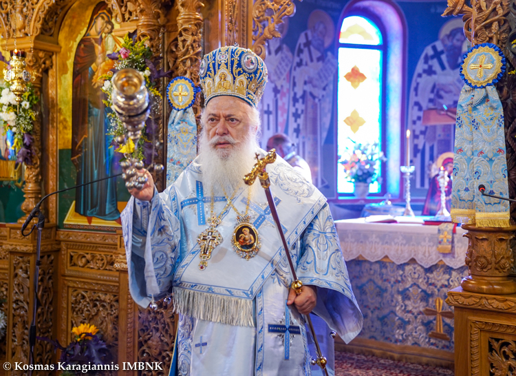 “Αν, λοιπόν, θέλουμε να είμαστε άξιοι της αγάπης του Θεού και να τιμούμε την Παναγία μας, ας προσπαθούμε και εμείς να δείχνουμε την πίστη και την αγάπη μας στον Χριστό εφαρμόζοντας στη ζωή μας τις εντολές του, ώστε να αξιωθούμε να κληρονομήσουμε και να απολαύσουμε την αιώνιο ζωή μαζί με την Παναγία μητέρα μας, την Υπεραγία Θεοτόκο” τόνισε στο κήρυγμά του ο Σεβασμιώτατος.