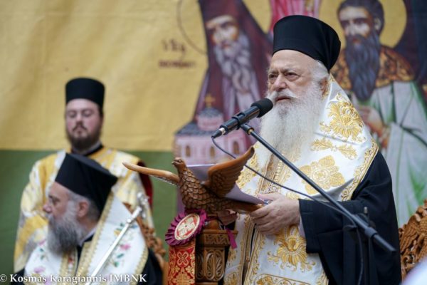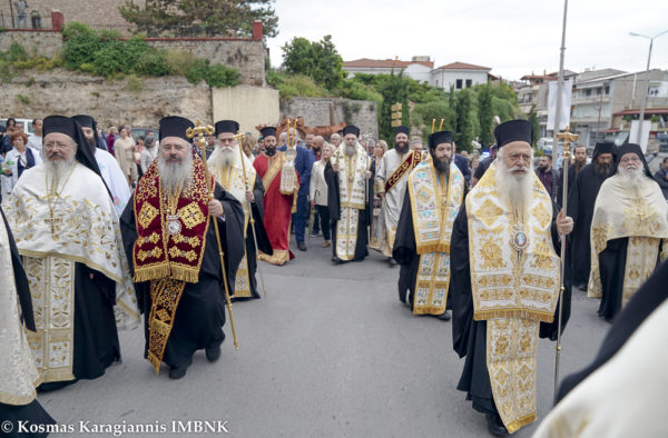 Ο Σεβασμιώτατος Μητροπολίτης κ. Παντελεήμων εξέφρασε την ευγνωμοσύνη του και τις ευχαριστίες του προς τους Αγίους Αρχιερείς, οι οποίοι ανταποκρίθηκαν στο κάλεσμα της Ιεράς μας Μητροπόλεως και λαμπρύνουν με την παρουσία του την Ιερά Πανήγυρη, λέγοντας μεταξύ άλλων: Πρίν ἀπό μία περίπου ἑβδομάδα ἀκούσαμε καί ἐμεῖς μαζί μέ τούς μαθητές καί τίς μαθήτριες τοῦ Κυρίου μας τό χαρμόσυνο μήνυμα τῆς Ἀναστάσεως τοῦ Χριστοῦ, τό ὁποῖο τούς μετέδωσε ὁ ἄγγελος. Καί αὐτό τό χαρμόσυνο μήνυμα ἔσπευσαν οἱ μαθητές νά τό δια­κη­ρύ­ξουν ὄχι μόνο στήν Ἱερουσαλήμ ἀλλά καί στά πέρατα τοῦ κόσμου ὡς ὁμολογία πίστεως στόν Χριστό, τόν «δι᾽ ἡμᾶς παθόντα καί ἀνα­στά­ν­τα».