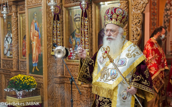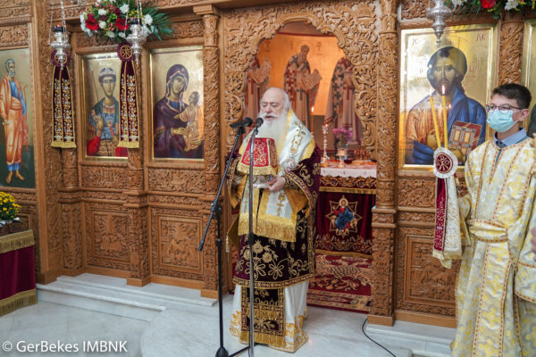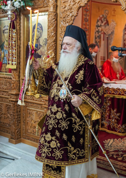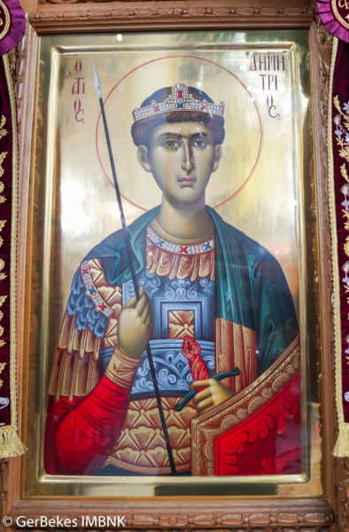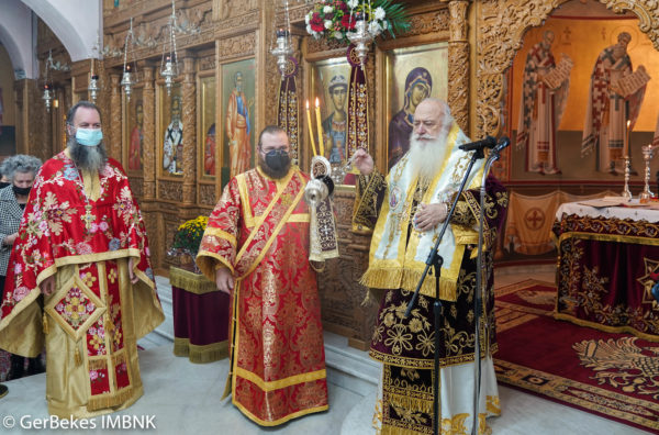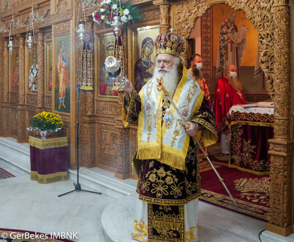 Γι᾽ αὐτό καί τιμώντας σήμερα τή μνήμη τοῦ ἁγίου μεγαλομάρτυρος Δημητρίου τοῦ μυροβλύτου, ἄς τόν τιμήσουμε μι­μού­μενοι καί τή ζωή του. Καί τότε θά μποροῦμε νά εἴμεθα βέ­βαιοι ὅτι καί ἐκεῖνος θά τείνει εὐή­κοο οὖς στίς προσευχές μας, θά ἀκούει τόν πόνο καί τίς ἱκεσίες μας, θά εἶναι πάντοτε φύλα­κας καί προστάτης μας καί θά μᾶς ἀπαλ­λάξει καί ἀπό τόν κορω­νοϊό καί ἀπό ὅλα ὅσα μᾶς ἀπειλοῦν καί ἐπιβου­λεύονται τή ζωή μας καί τήν ψυχή μας μέ τή χάρη καί τή δύναμη τοῦ Θεοῦ.
