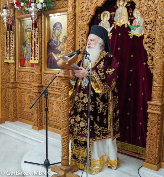 Καί γι᾽ αὐτό στρε­φόμεθα πρός τόν ἑορταζόμενο σή­μερα ἅγιο μεγαλομάρτυρα Δη­μή­τριο, ἐδῶ, στόν πανηγυρίζοντα ἱερό ναό του, καί τόν παρακαλοῦμε ἐπαναλαμβάνοντας τήν ἱκεσία τοῦ ἱεροῦ ὑμνογράφου: «Οἴκτειρον οὖν πανεύφημε, καί δός ἡμῖν ἄνεσιν, παῦσον τήν ζάλην καί σβέσον τήν καθ᾽ ἡμῶν ἀγανά­κτησιν».