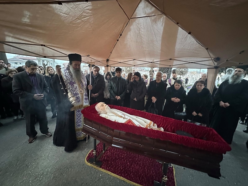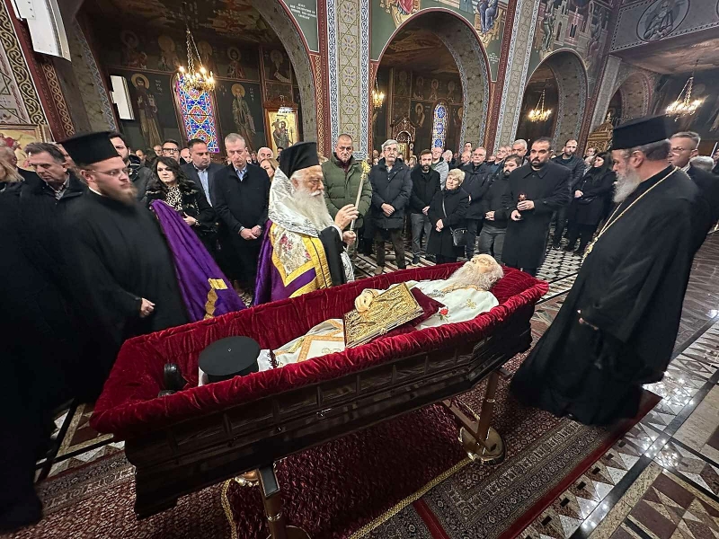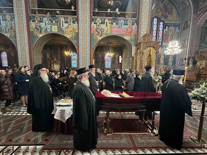 Της Νεκρώσιμης Ακολουθίας προέστη ο Σεβασμιώτατος Μητροπολίτης Βεροίας, Ναούσης και Καμπανίας κ. Παντελεήμων, ο οποίος εκφώνησε Επικήδειο Λόγο, ενώ συμμετείχαν και οι Σεβασμιώτατοι Μητροπολίτες Χαλκίδος, Ιστιαίας και Βορείων Σποράδων κ. Χρυσόστομος, Νεαπόλεως και Σταυρουπόλεως κ. Βαρνάβας, Γρεβενών κ. Δαβίδ, καθώς και ο Θεοφιλέστατος Επίσκοπος Δομενίκου κ. Αθηναγόρας.